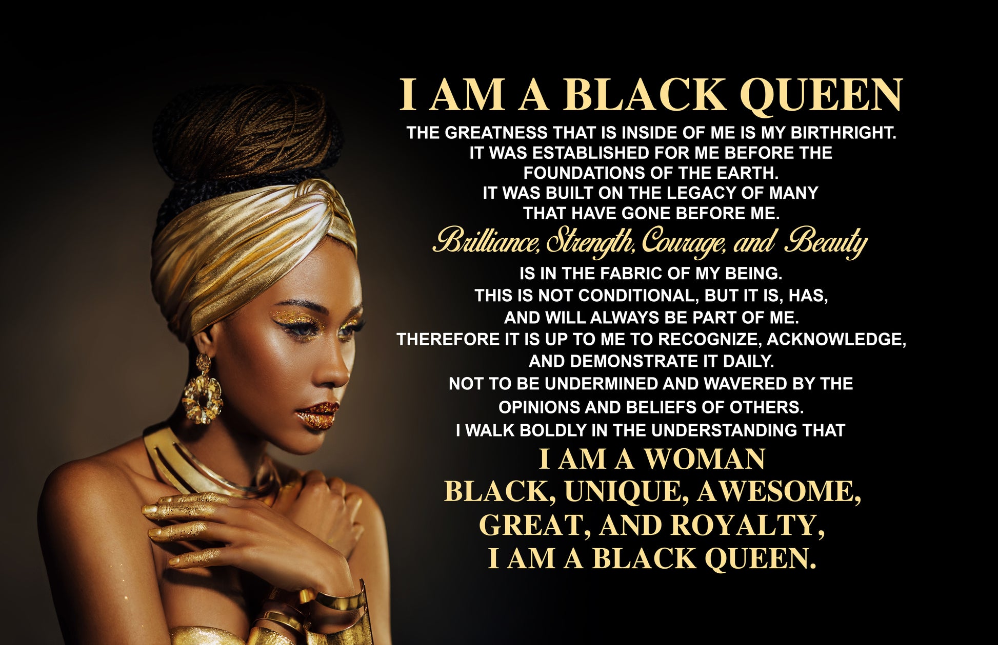 I Am A Black Queen is one of my signature affirmations that I created that is designed to empower and motivate you into acknowledging your own personal greatness.